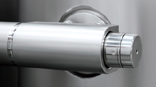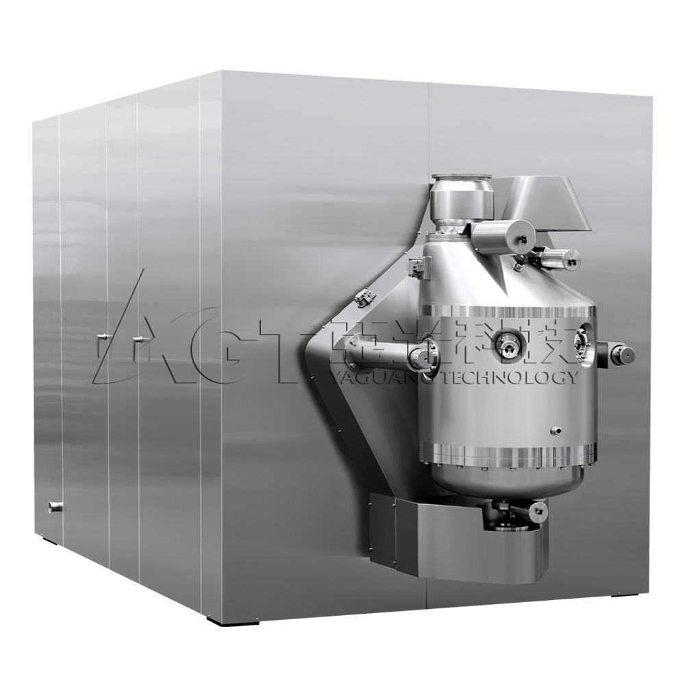 自动密闭出料装置 俗称"象鼻子出料装置",能够有效避免胶塞出料时与外界接触造成污染; 出料系统可进行CIP和